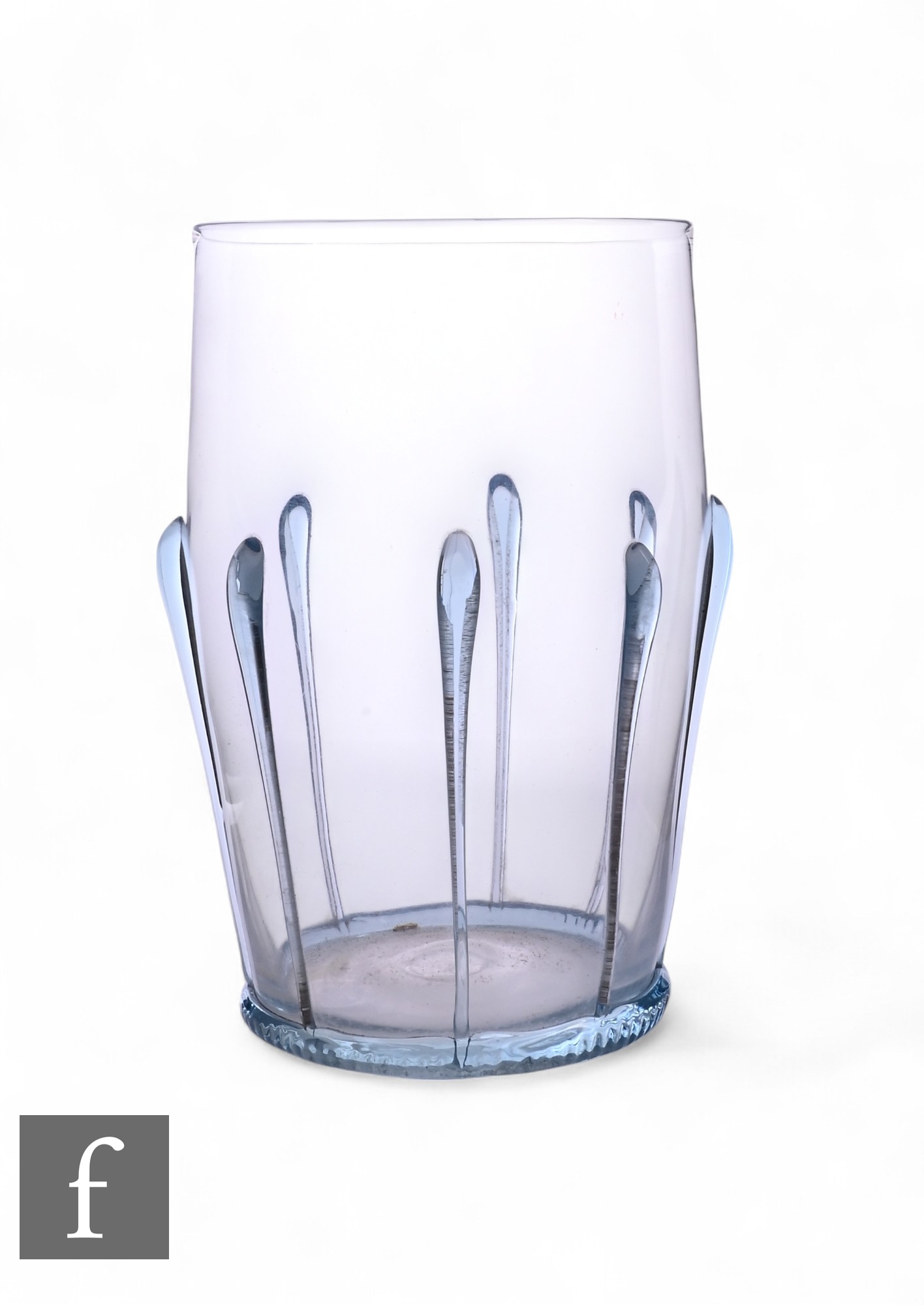 Harry Powell - Whitefriars - An Arts and Crafts early 20th Century 'Hugo Van der Goes' 'Tear' vase, pattern 1099, flint glass with blue tears and crenalated foot ring, height 15.5cm.