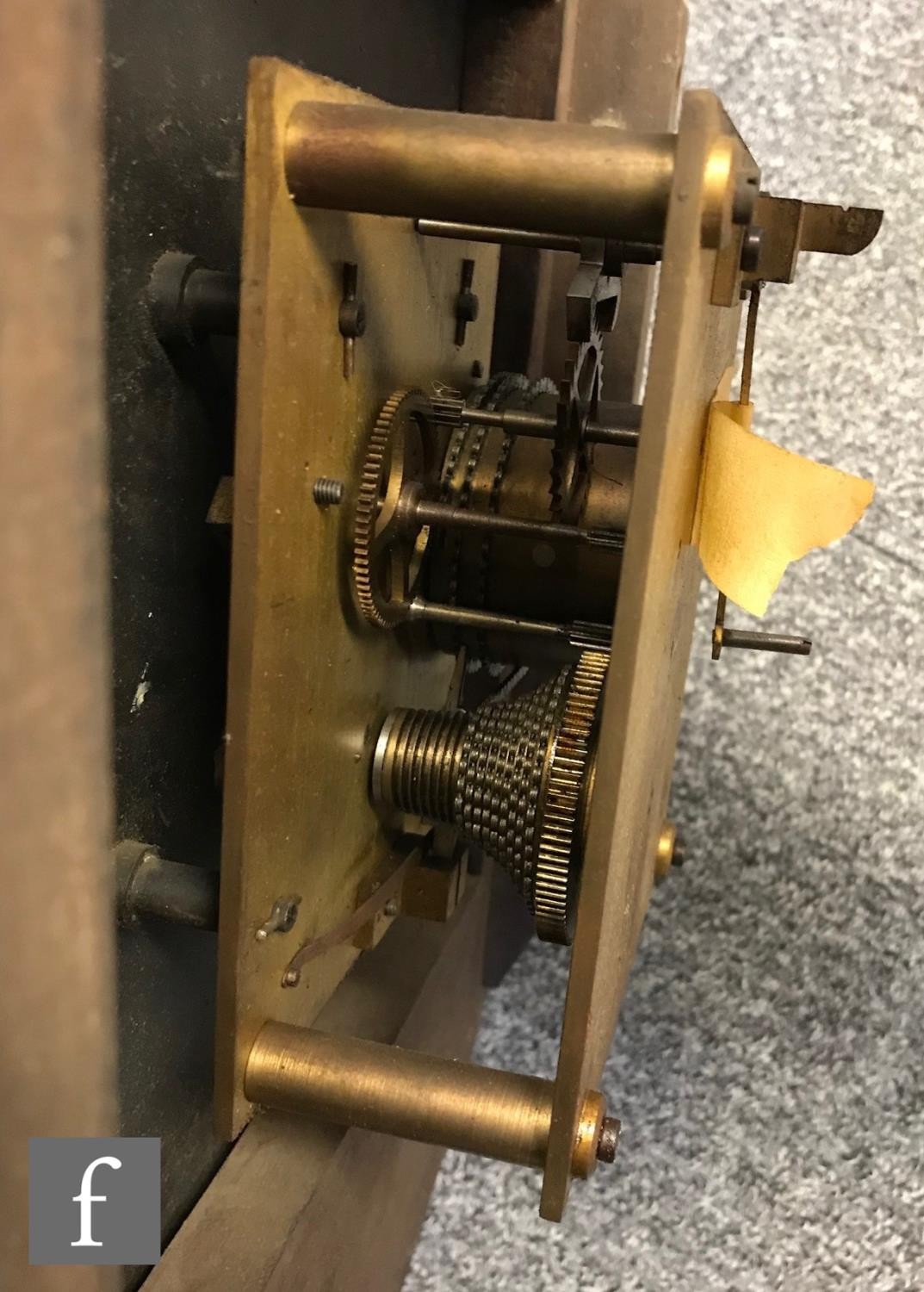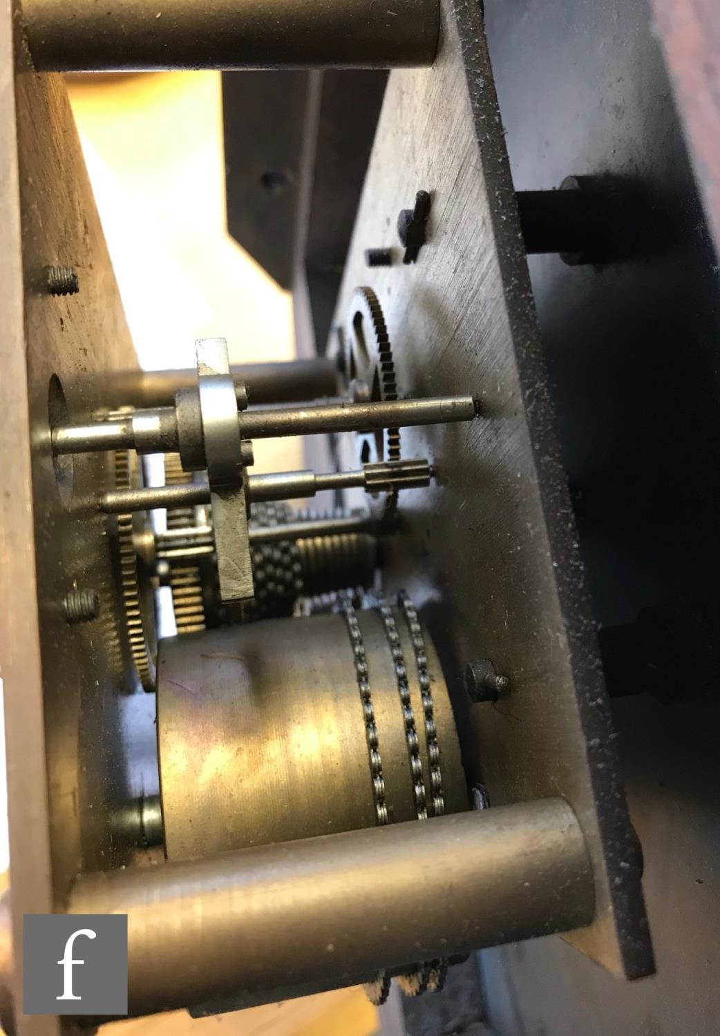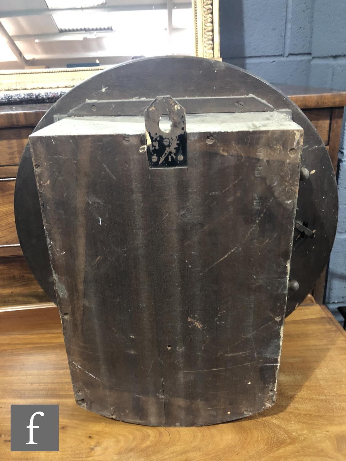 The movement looks okay, although as catalogued it is missing its pendulum. The suspension rod is taped to the back (likely for some time as the masking tape is deteriorating and stained). The fixing pegs are present. The dial, is as seen in the image - there are strain lines and radiating splintering to the enamel of the four fixing marks. Very dusty. Scuffs and marks to the case and sides. Appears to be missing a small plate which would have sat on the case beneath 18, 6, 30. Consigned from a deceased estate.