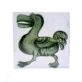 A William De Morgan Merton Abbey painted 6 inch dust pressed tile, decorated with a striding Dodo, tonal green glaze over light grey ground, impressed mark to reverse.