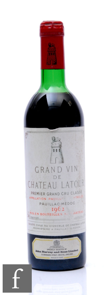 One bottle of 1962 Grand Vin De Chateau Latour Premier Grand Cru Classe, retailers label John Harvey and Sons Limited, Bristol.