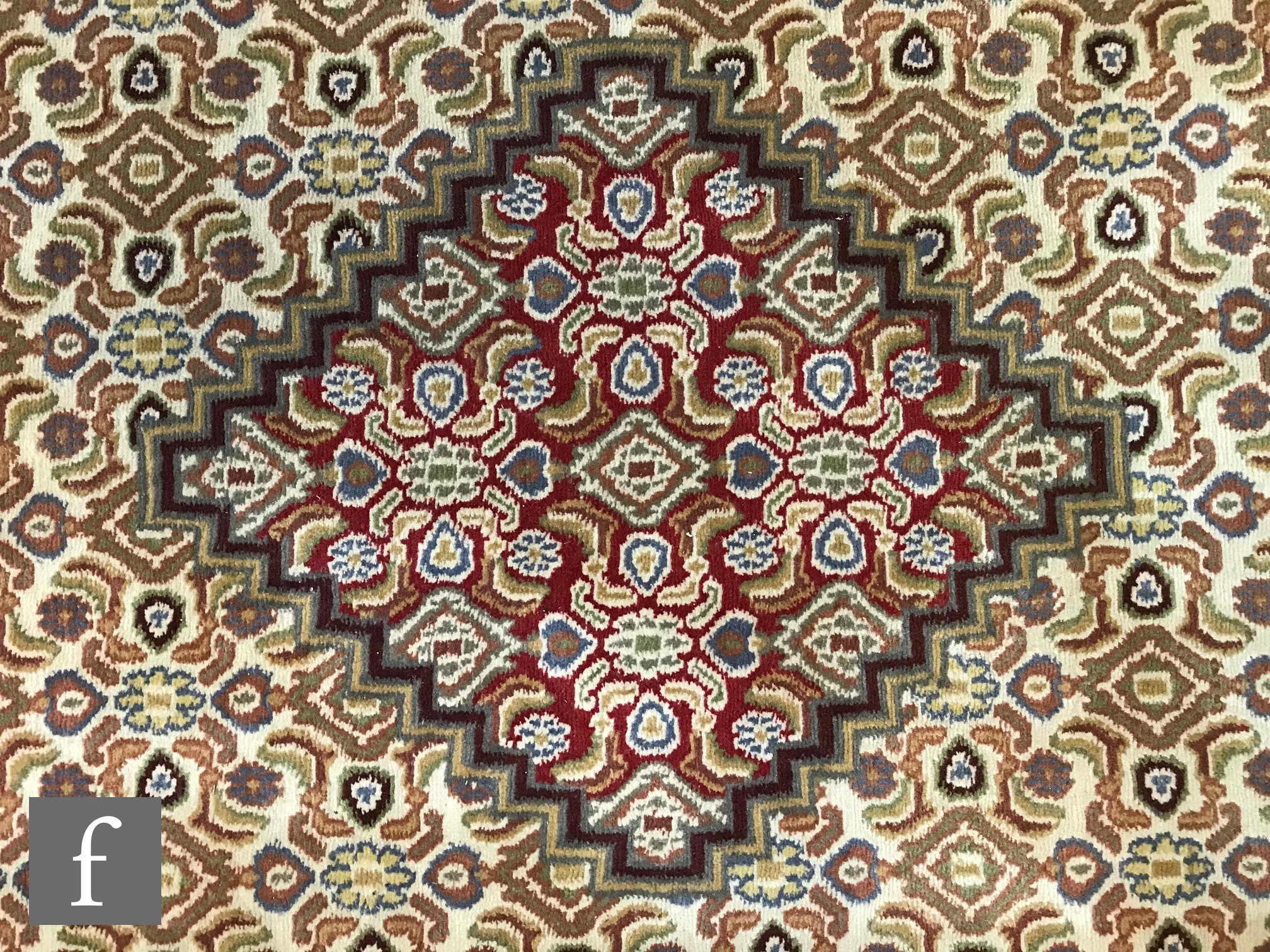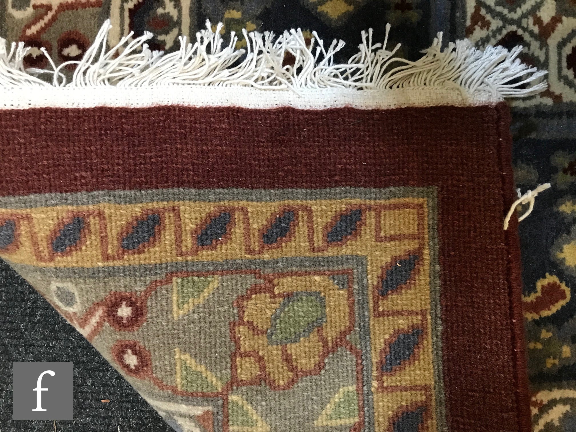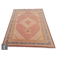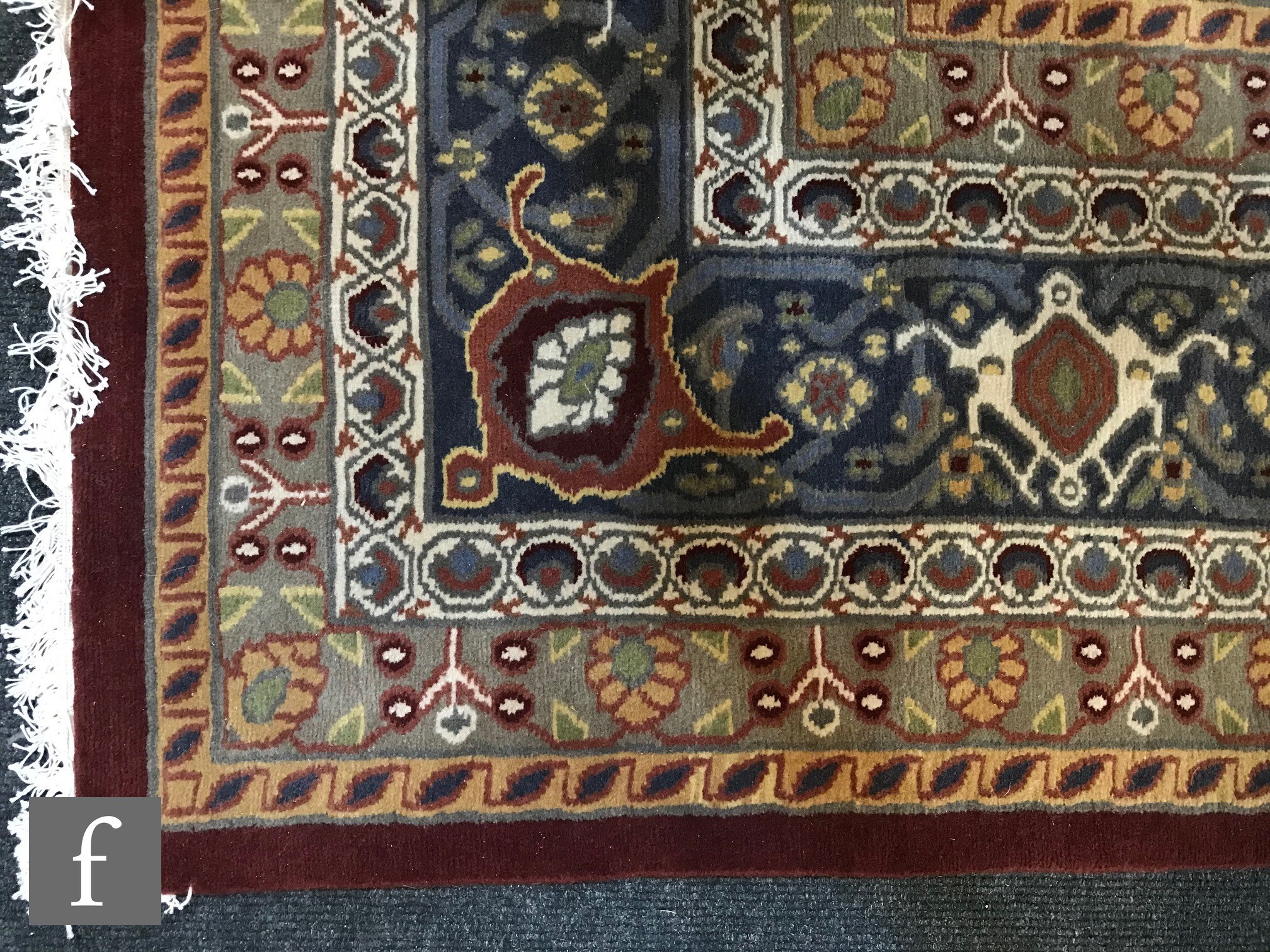 An very large Bidjar carpet, the hand knotted wool rug with central diamond design, within a series of Arabesque borders before a red claret ground, 371cm x 536cm.
