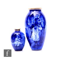 A Royal Doulton limited edition flambe egg on stand, gold printed mark, no.528, height 14cm, together with two Rouge Noir vases, tallest 20cm. (3)