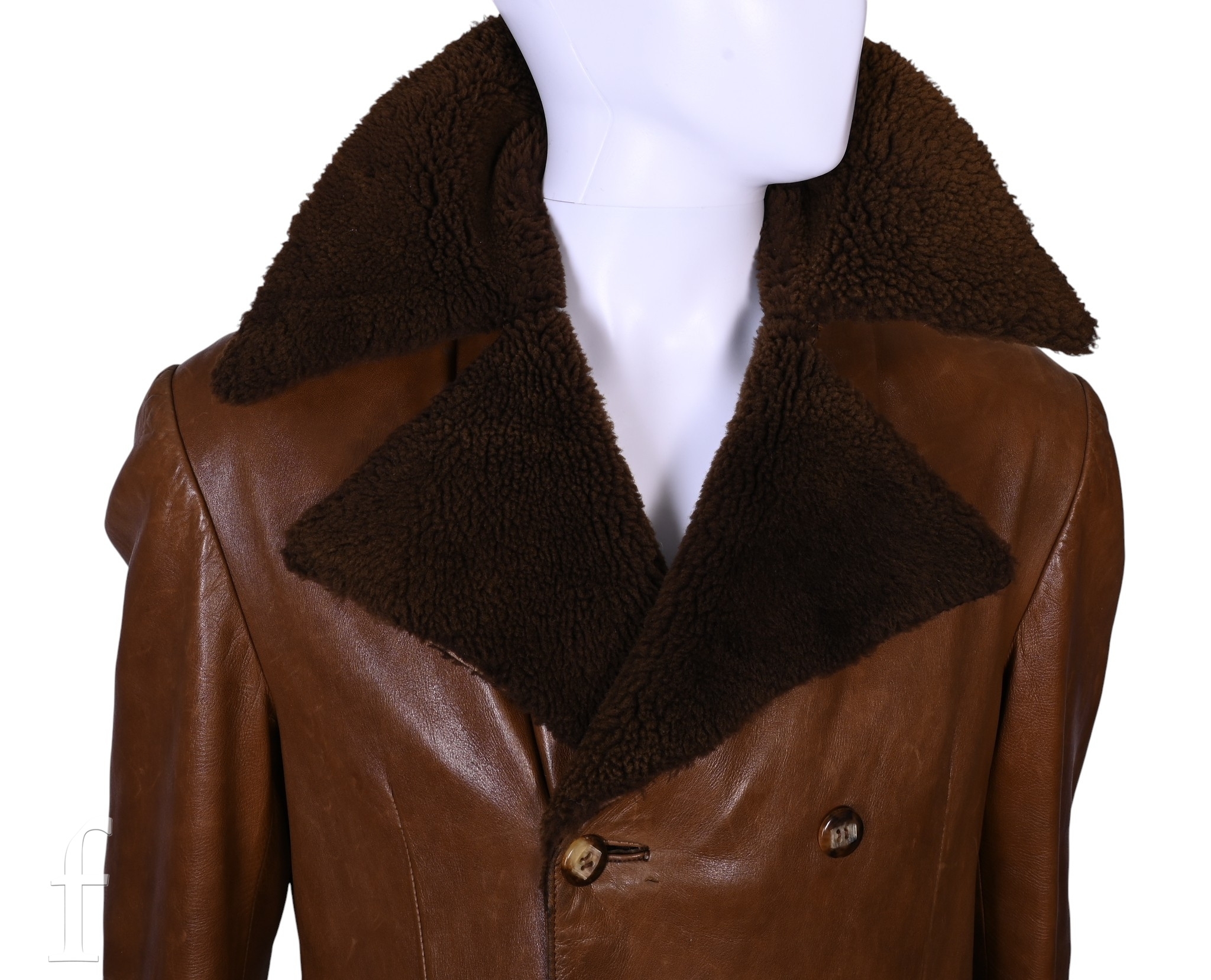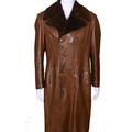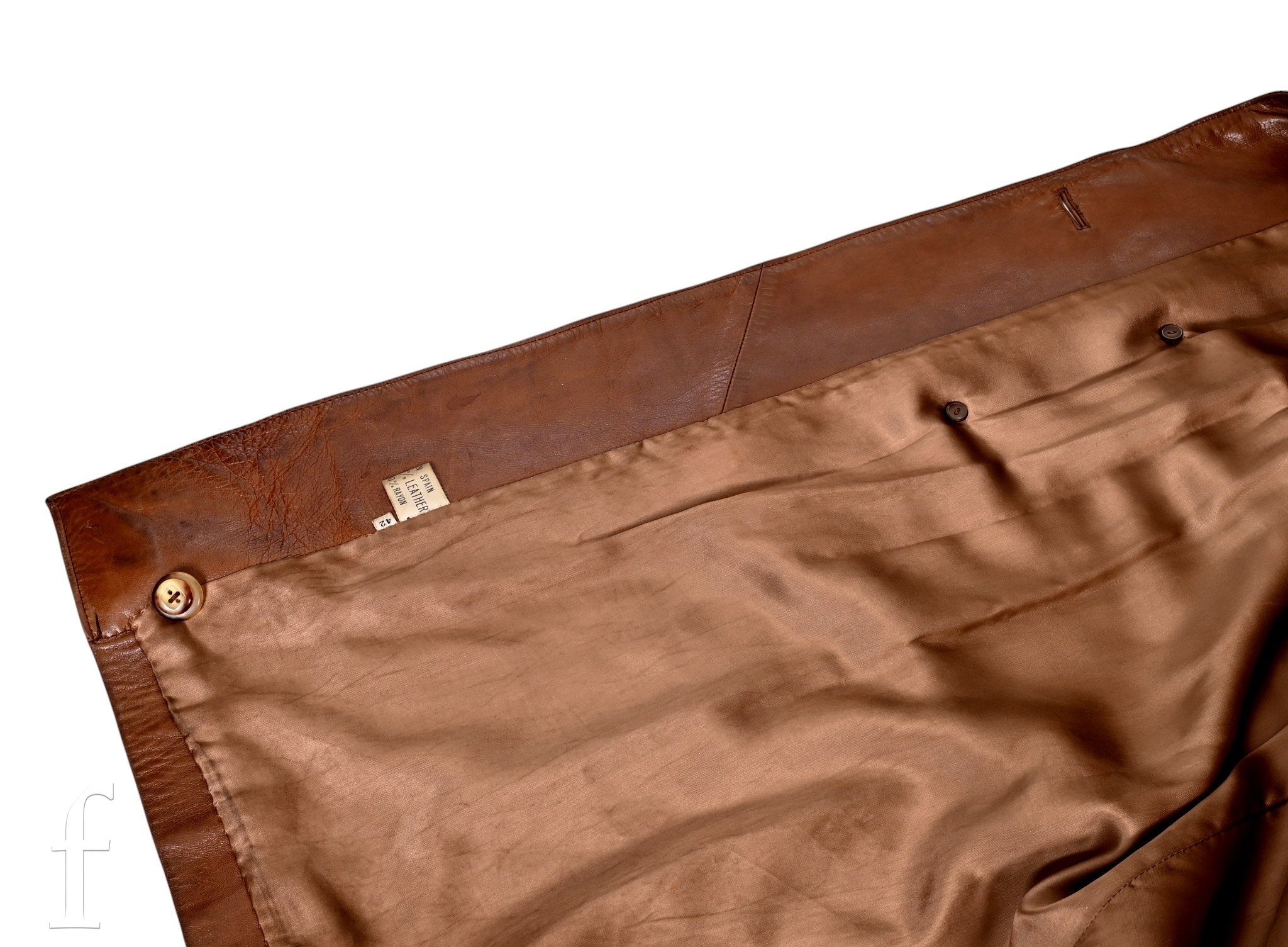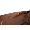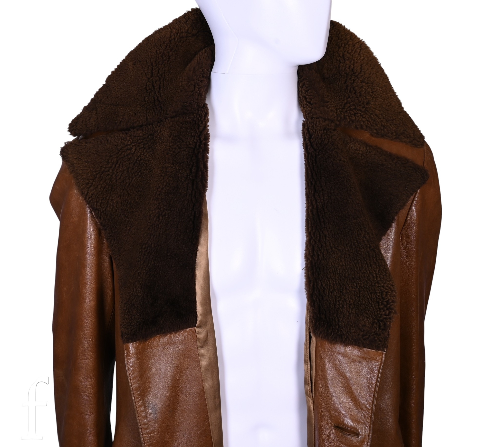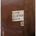 A 1970s John Bonham owned and worn brown leather Jacket with brown faux fur trim collar, no makers label, with label stating made in spain, armpit to armpit 22", overall length 44", arm length 24.5".
