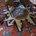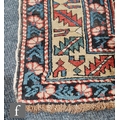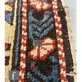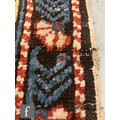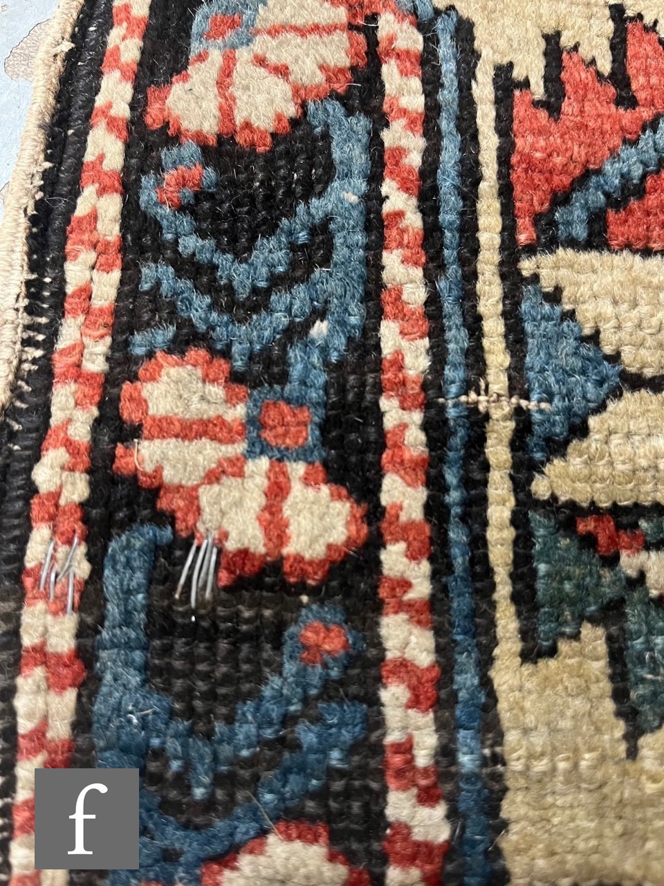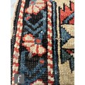 Numerous stitched repairs to splits around the edges of the rug. Some stitched repairs to splits in the rug. Some areas of wear to the stitching. Stapled in places. Please see additional images.