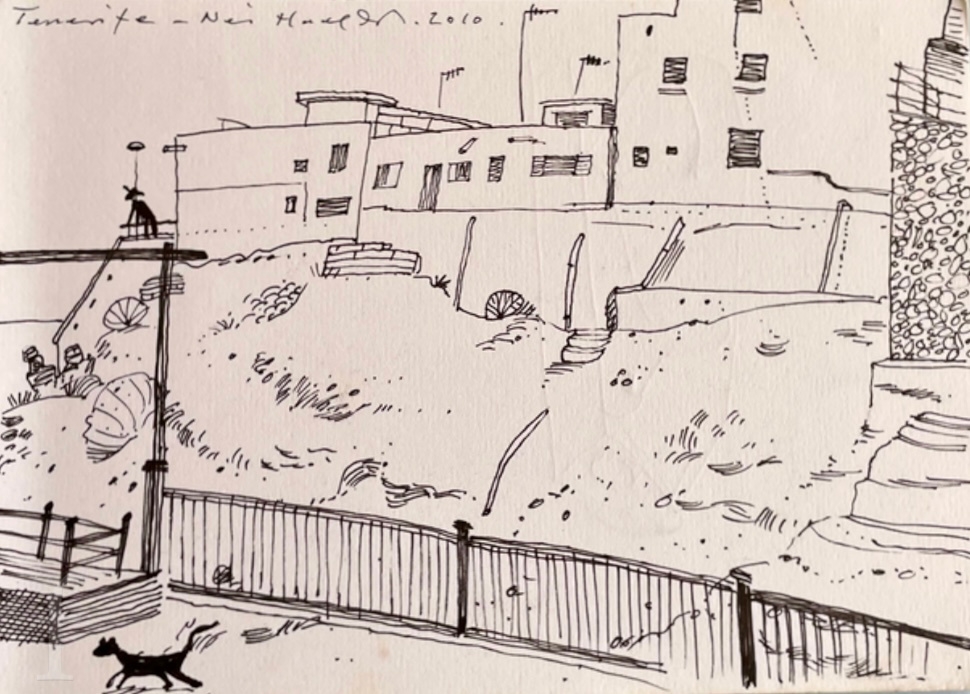 Neil Hadfield (British artist) - 'Tenerife 2010', fine line drawing, 15cm x 21cm, frame size, 23cm x 28cm.