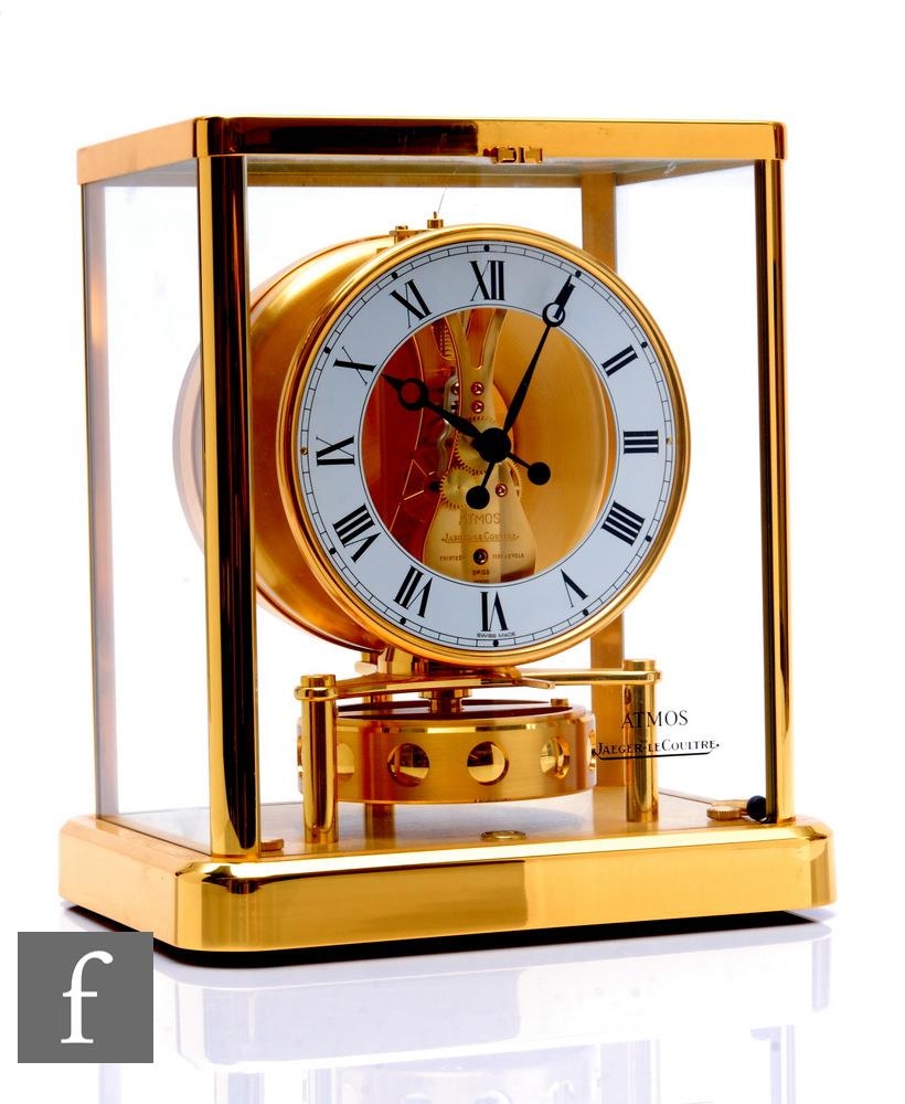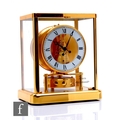 A Jaegar-Le-Coultre Atmos clock in brass edged glazed case, height 23cm.