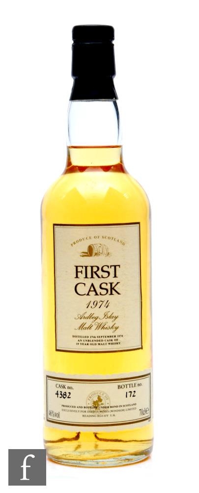 A 70cl bottle of Ardbeg 1974, 19 Year Old, First Cask Malt whisky, cask No. 4382, bottle number 172.
